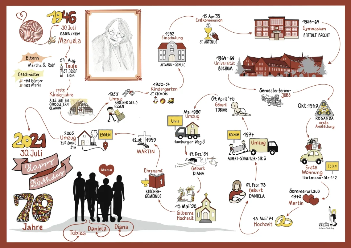 Wir haben ein besonderes Faible für einzigartige Anlässe. Sei es ein runder Geburtstag, bei dem der Fokus auf dem Jahrgang und den Highlights des Geburtsjahres liegt, oder eine visuelle Darstellung eines Lebenslaufs oder beruflichen Werdegangs – wir erschaffen persönliche Geschenke, die sich einprägen.