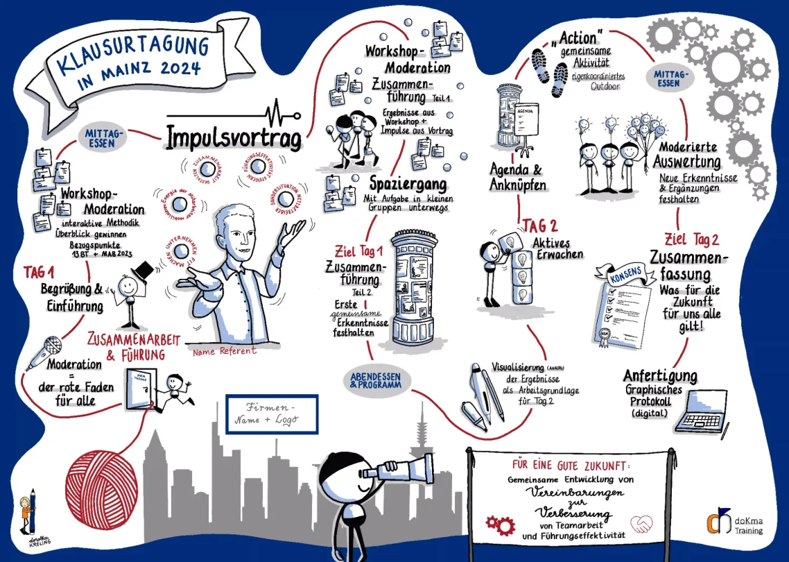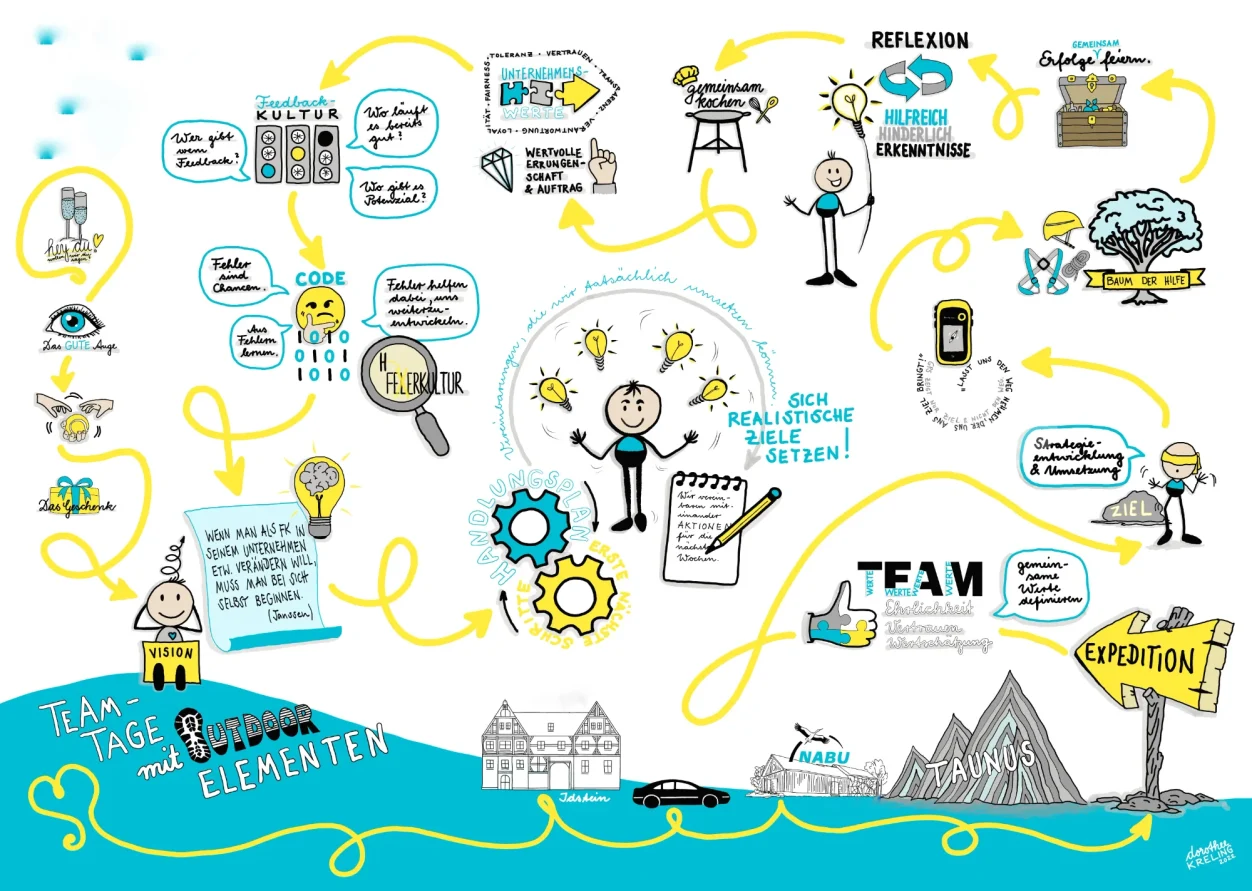Erlebe, wie wir mit bildhaften Abläufen, aufschlussreichen Kommentaren und amüsanten Sketches die Inhalte deines Workshops greifbar und nachvollziehbar machen.